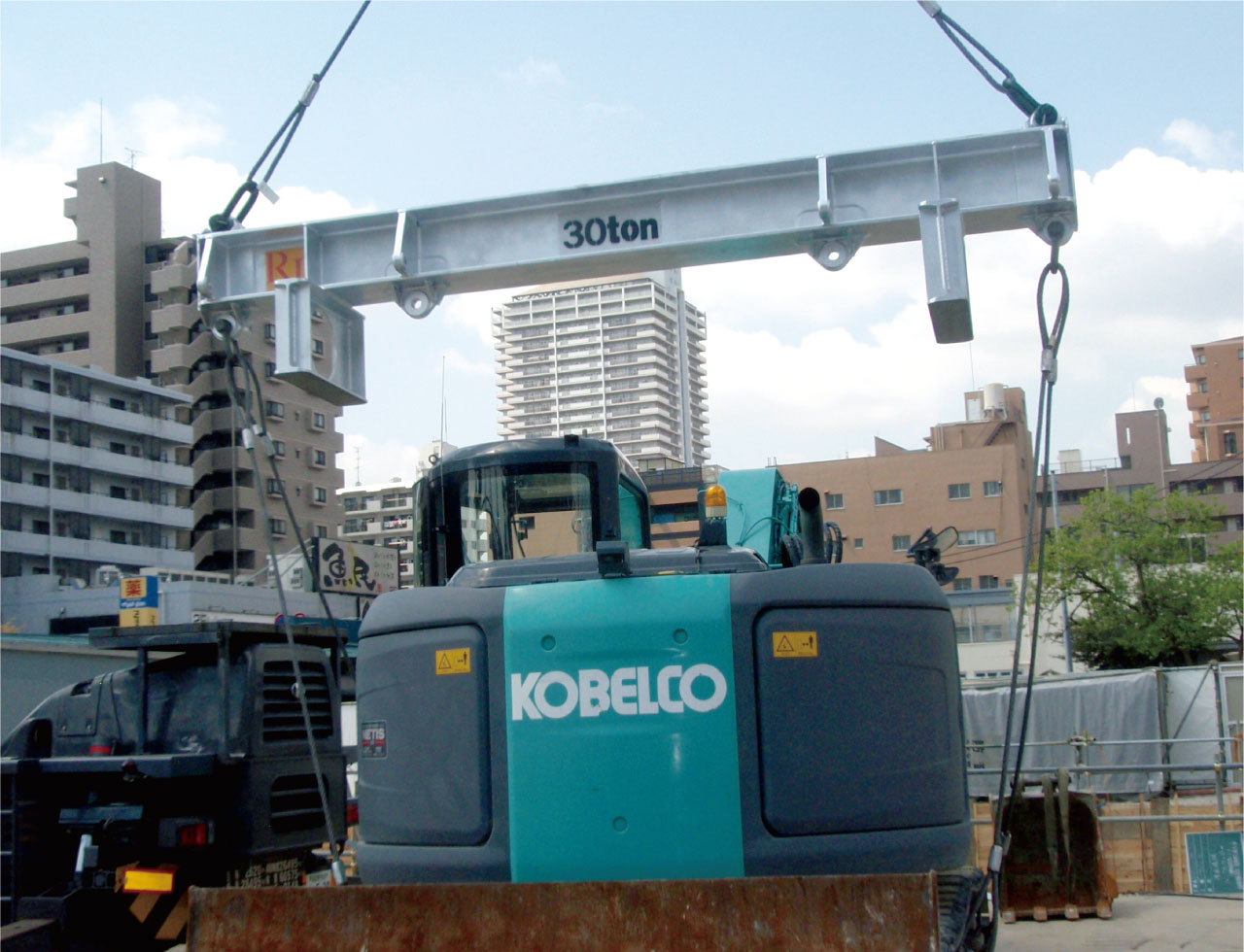 アールアイビーム棒天秤 重機吊り使用例- 写真集へ