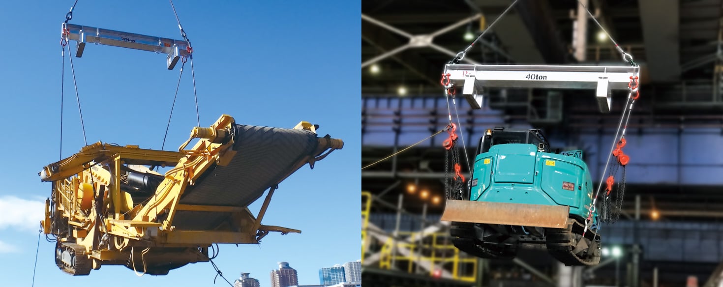 4m長さの天秤は重機を吊るのに最適!