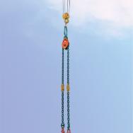 鉄鋼構造物のようにワークの重心位置がわからないものや、吊り点の高さが異なるものなどのバランスが悪いワークでも素早くバランス吊りが出来、吊り点の高さが変化する建て起こし・反転作業時に対して最適な構造です。チェーンを採用していることで、従来からの玉掛け作業のワイヤ式と違いワイヤ独自のねじれや、はね返り等のくせがありません